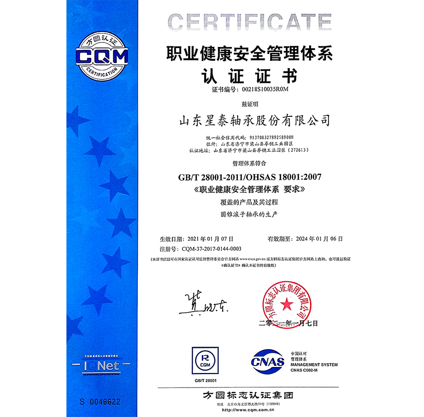 職業(yè)健康安全(quán)管理體系(xi)認證證書(shū)